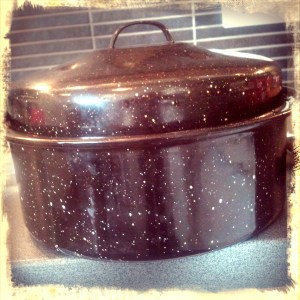 Þetta er potturinn sem ég notaði, trítlapottur við hliðina á steikarpottunum sem flestir þekkja :) Hann er bara lítill og krúttlegur :)